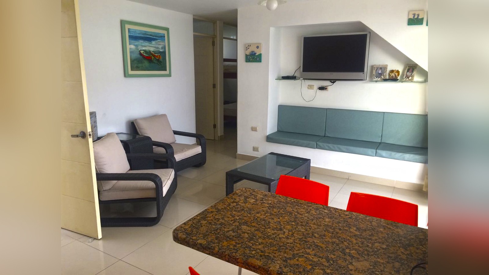 2 dormitorios con 5 camas (con TV) y un baño compartido