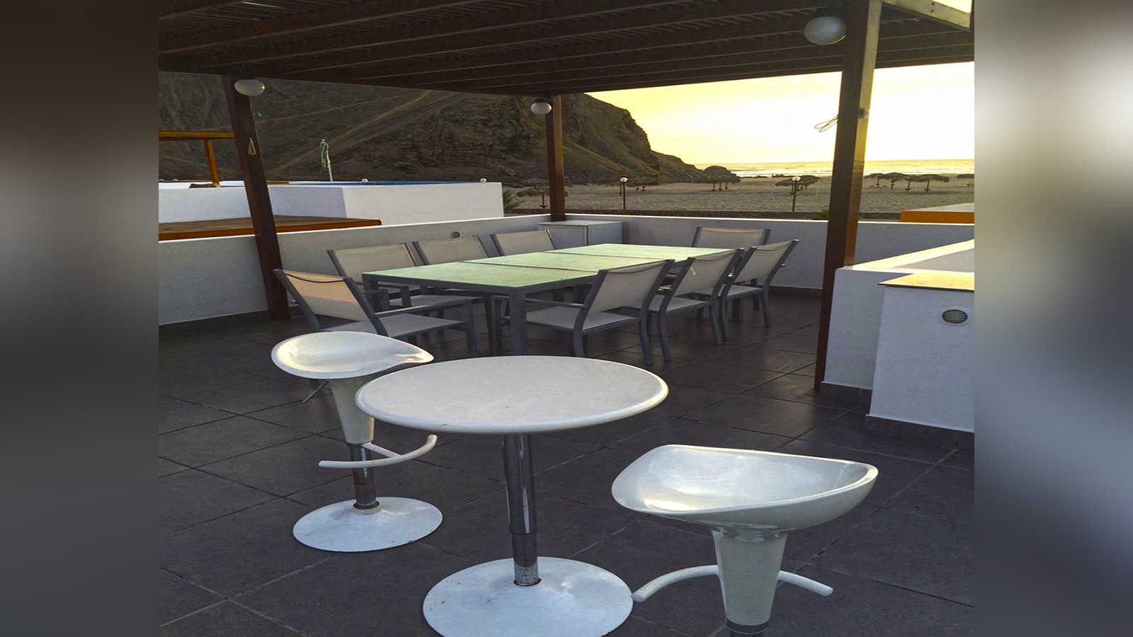 Comedor techado y piscina.