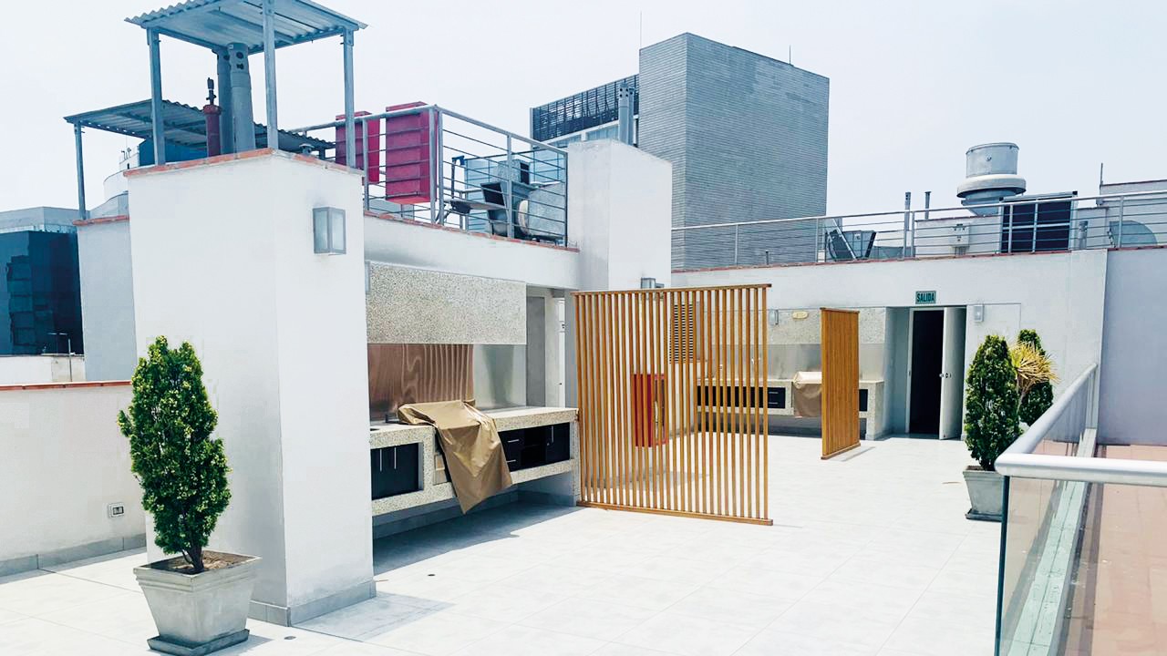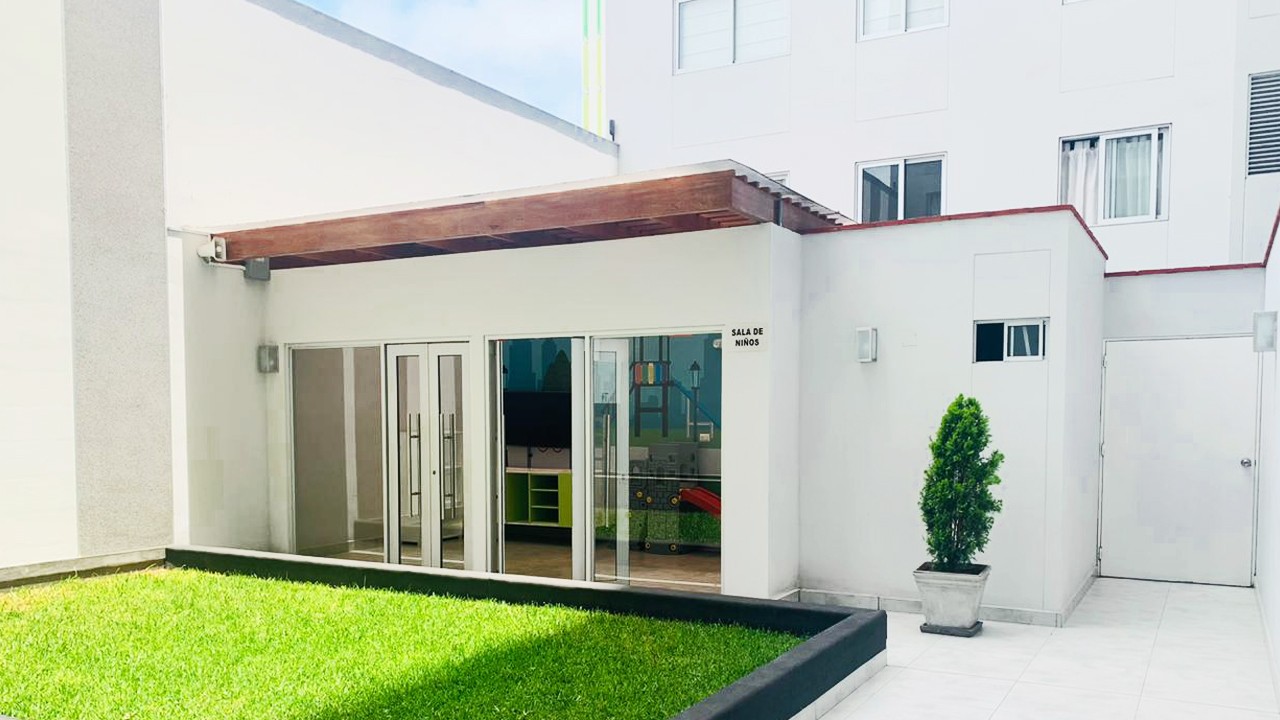 Se alquila lindo departamento de 90m2, en moderno edificio de dos años de antigüedad, en Av. Juan de Aliaga. Cuenta con recepción y vigilancia las 24 horas. En la azotea tiene una amplia zona de parrillas con una vista espectacular y en el primer piso tiene un área especial para niños, para uso de los residentes. Los tres ascensores, marca Otis, permite una rápida circulación. El edificio tiene 16 pisos mas la azotea y tiene seis departamentos por piso.