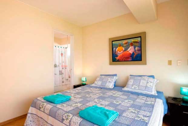 - Dormitorio principal: 1 CAMA KING, Walk-in closet, TV, Baño completo con “Vista panorámica al mar”.