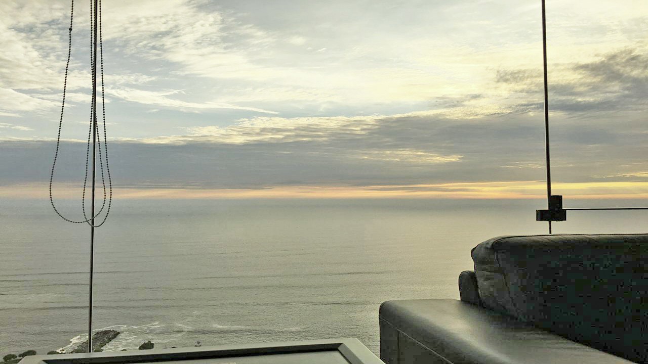 Sala y comedor con vista al mar,.