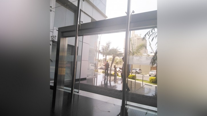 sala con mampara vista externa al loby.