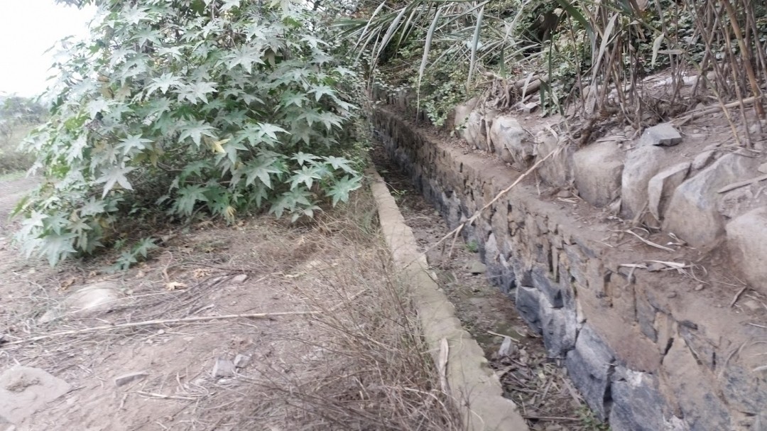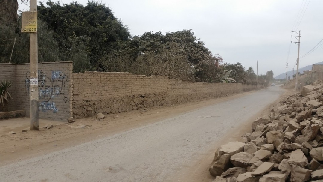 Todo el frontis del terreno y la parte lateral derecha cuenta con un canal de regadío , por la carretera hay postes con cableado eléctrico