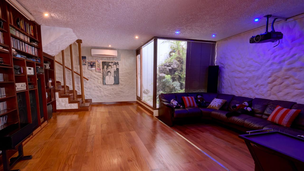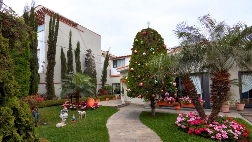 Construida sobre un área de terreno de 1,300 m2; su interior tiene un estilo clásico, muy acogedor, que combina perfectamente con lo rústico de algunos ambientes como el social y el área libre.
