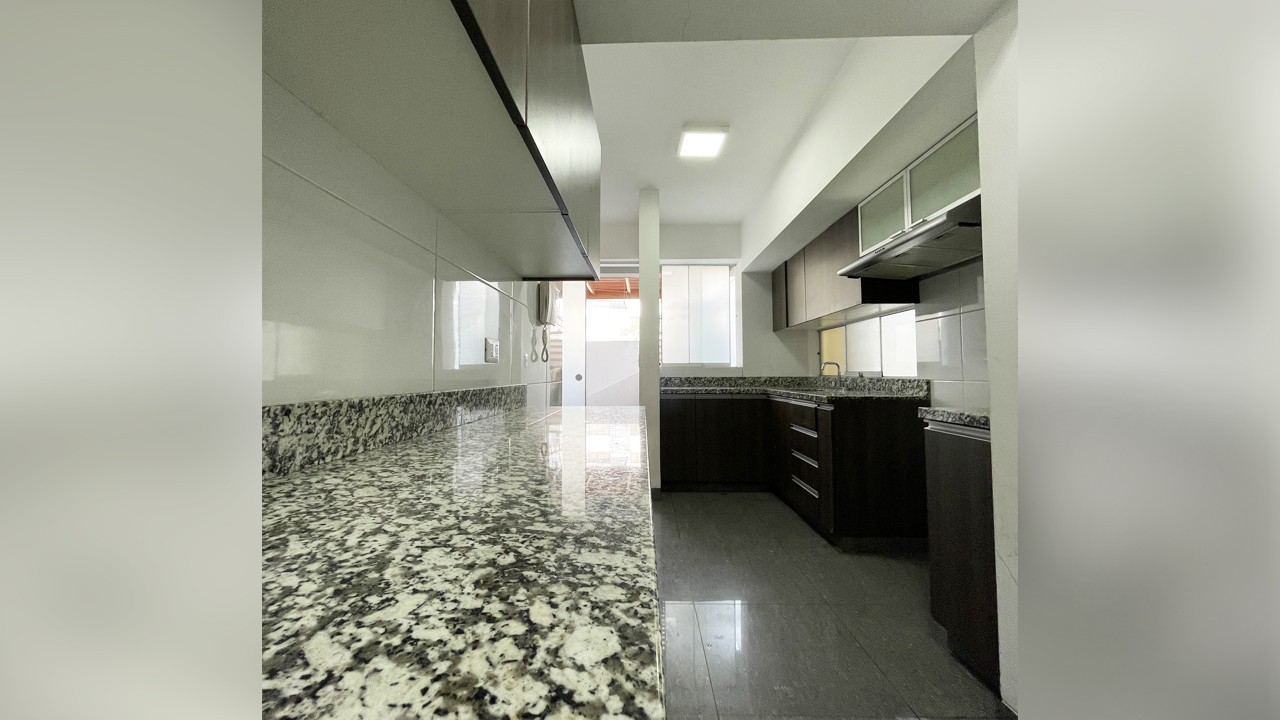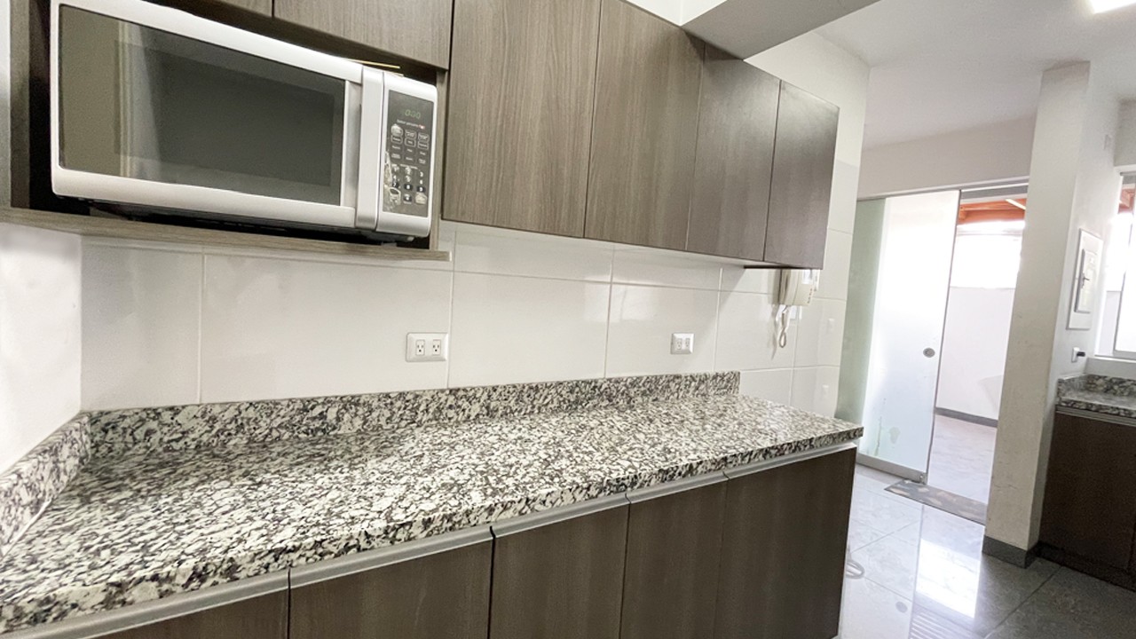 - Cocina con muebles altos y bajos, encimera granito. Lavandería y baño de servicio.