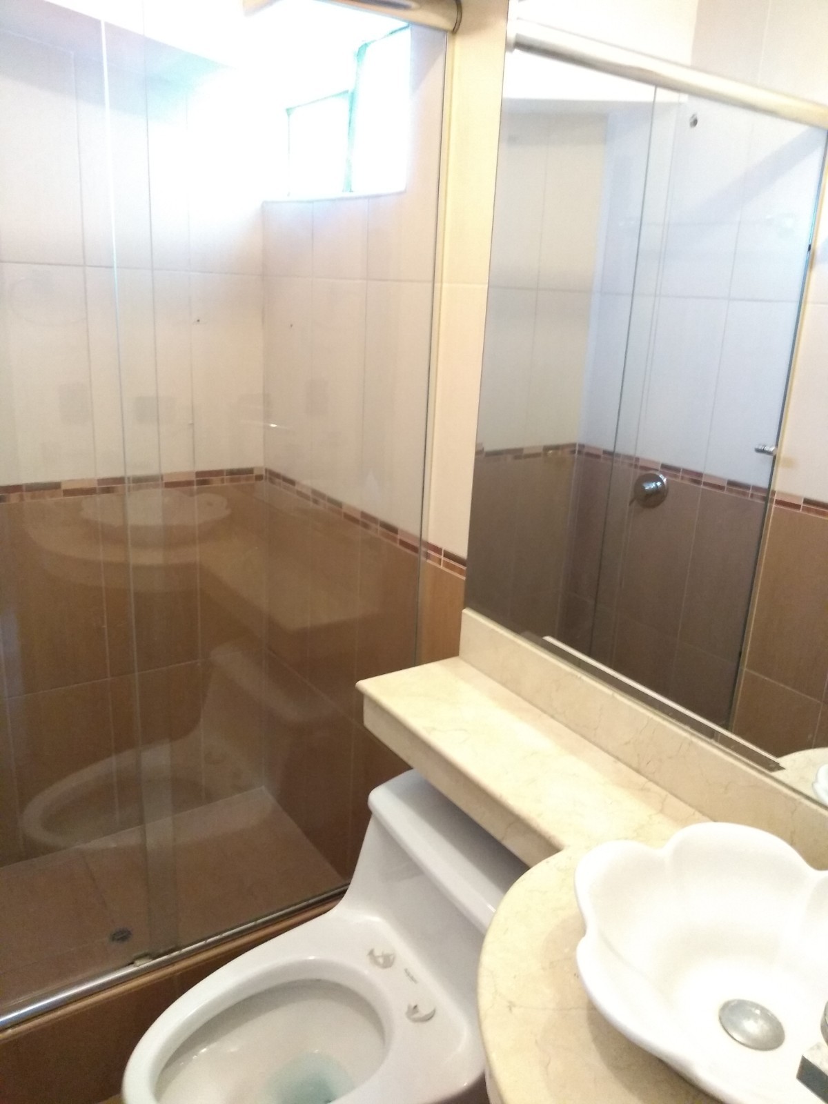 2 baños con acabados en mármol y vidrio templado , (los pisos en los dormitorios son de parquet).