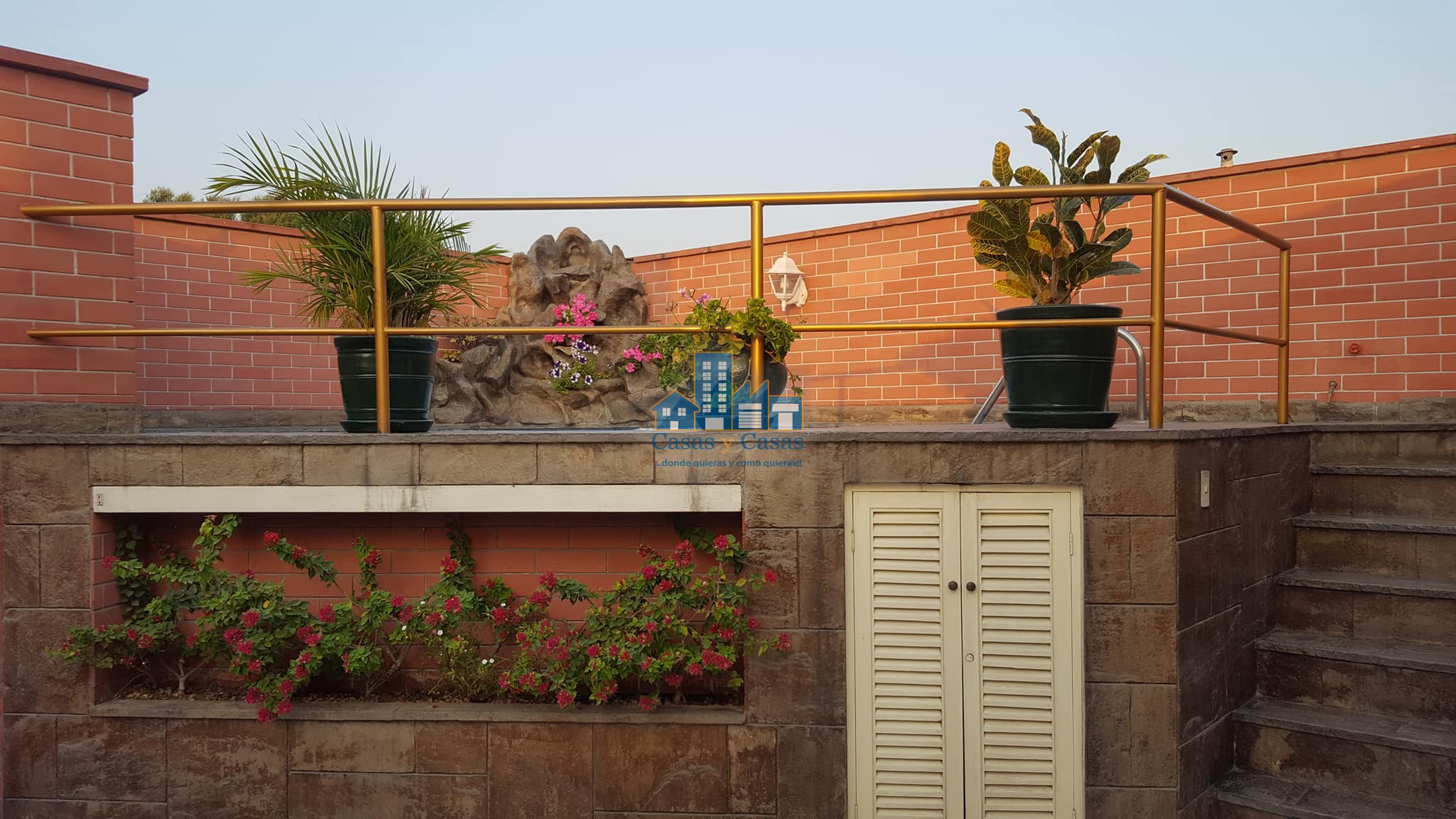 ☑️ Piscina con caída empedrada de agua.