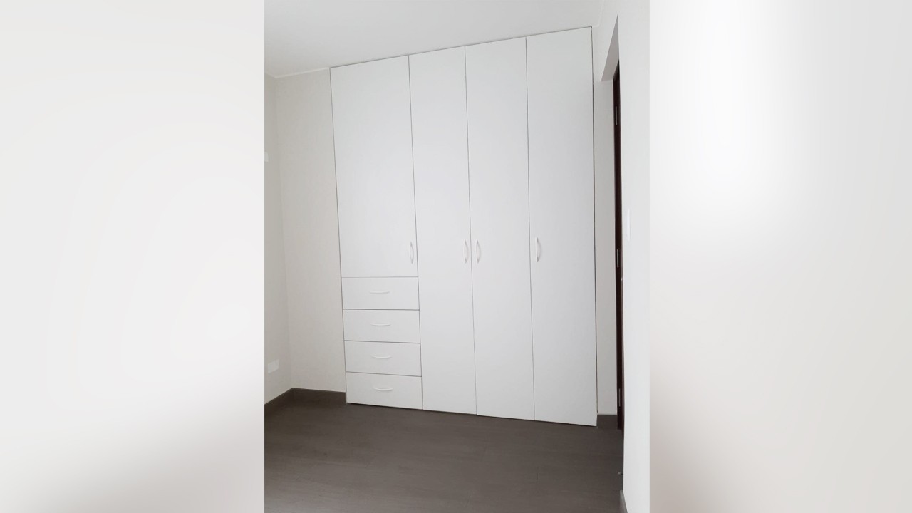 Dormitorio principal con baño y walking-cliset en Melamine incorporados.