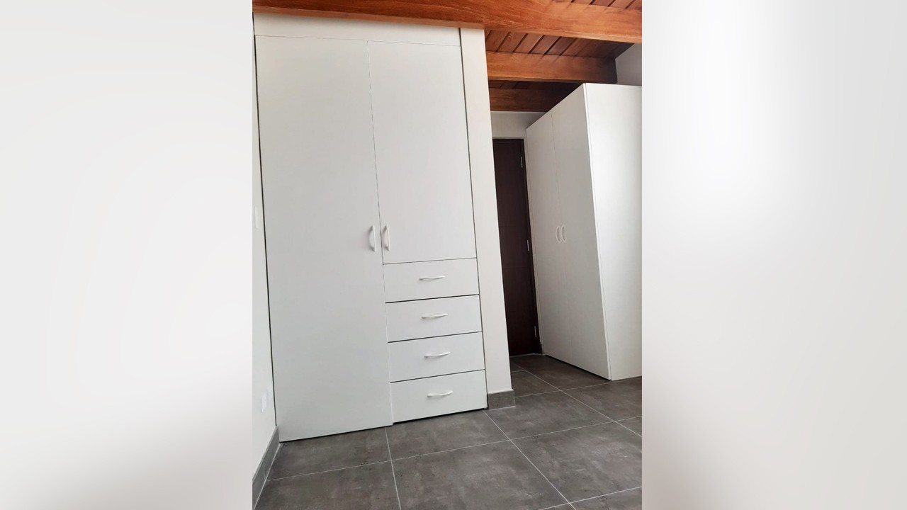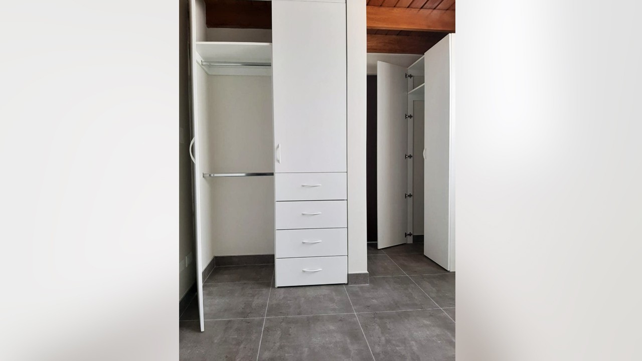 Dormitorio secundario con closet en melamine incorporado.