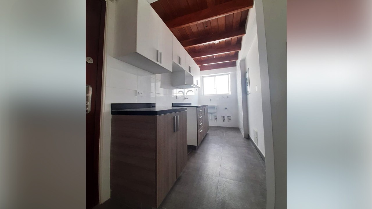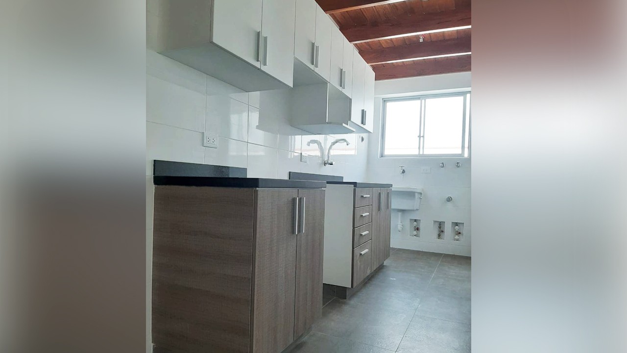 Cocina tipo kitchenet con reposteros altos y bajos / Lavandería.