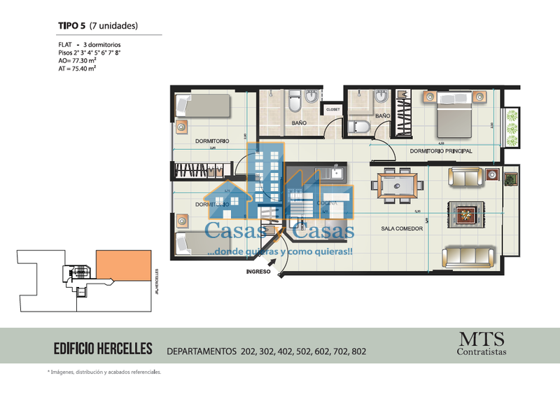 | Area Construida: 77 m2 |
